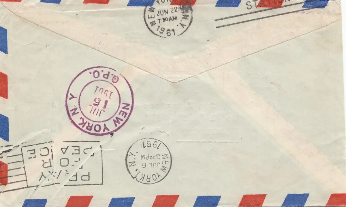 Équateur: 1961 Pray for Peace: Air Mail to Washington, Returned Sheraton Atlantic