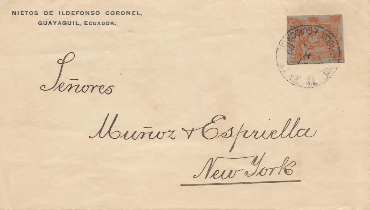 Équateur: letter Nietos de Ildefonso Coronel Guayaquil to New York