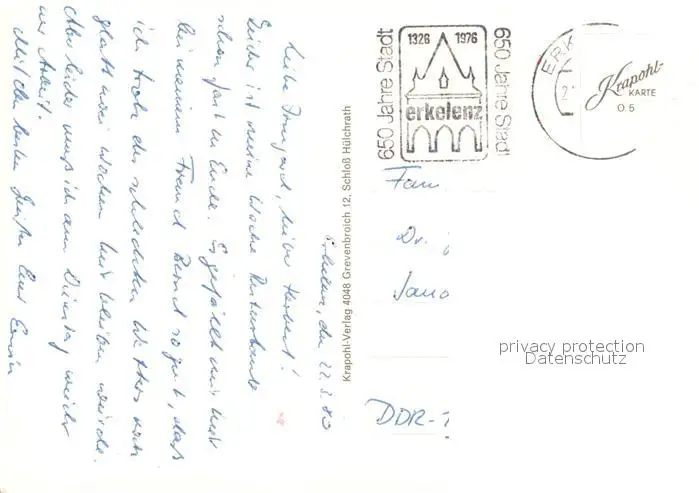 Erkelenz Dr. Eberle Platz Markt Kirche Burg Rathaus Stadthalle Ziegelweiher Fontaene Erkelenz postalisch gelaufen 1980 Erhaltung siehe scans [FriedD77] Frierer