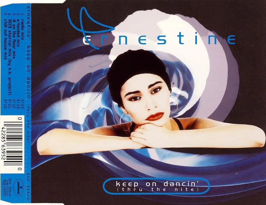 CD Single Ernestine - Keep On Dansin' Thru The Nite, incl. German Info-Sheet, État CD M- Hülle M; Fabriqué en Allemagne 1995 Mercury 856 395-2, Tracks [Radio Mix] 3:55, [X-Tended Mix], 6:05, 4 On The Floor Mix ] 5:10, [303 Eternal Mix) 5:21,[Chill Out House Mix]. 5:15