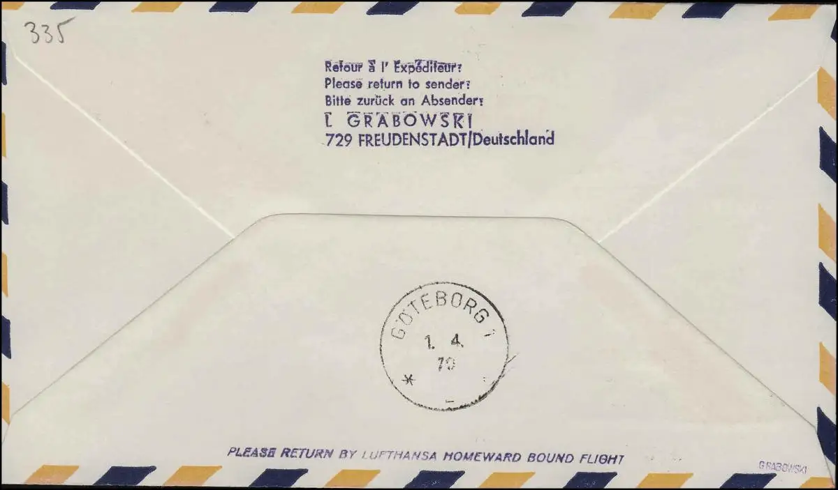 Vol d'ouverture Lufthansa LH 214/ 215 Airmail Hambourg 634 / Göteborg 1.4.1970
