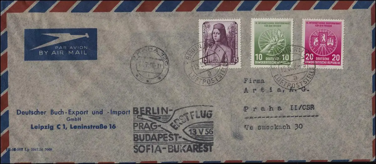 Ligne Berlin - Prague - Budapest - Sofia - Bucarest Premier vol 13.5.1956 Examen: original Référence produit: 00000000013394
