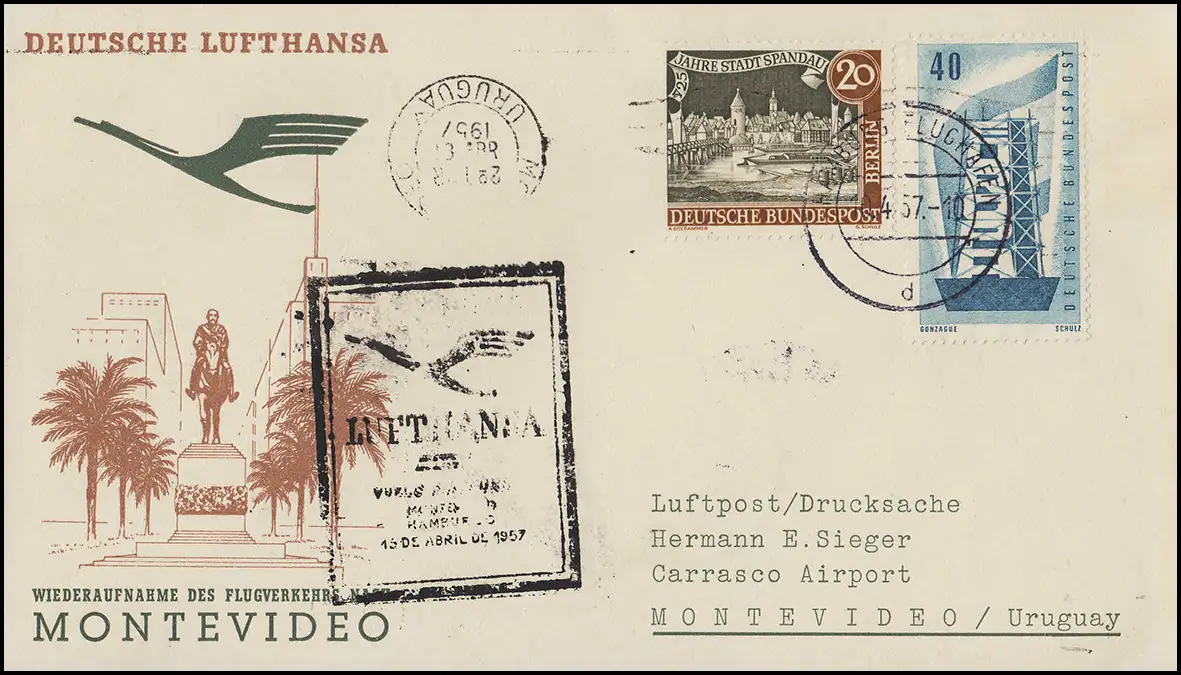 Vol d'ouverture Lufthansa Montevideo, Hambourg 10.4.57/ Montevideo 15.4. 57
