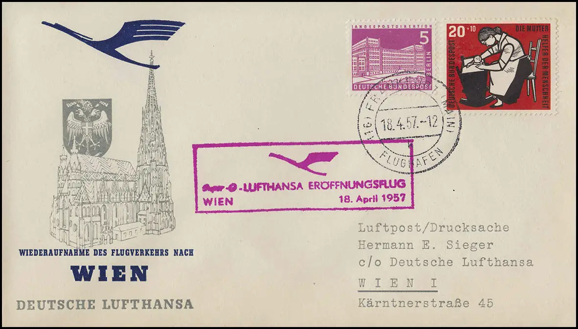 Vol d'ouverture Lufthansa à Vienne, Francfort (Main) 18.4.1957/ Vienne 18.4.1957