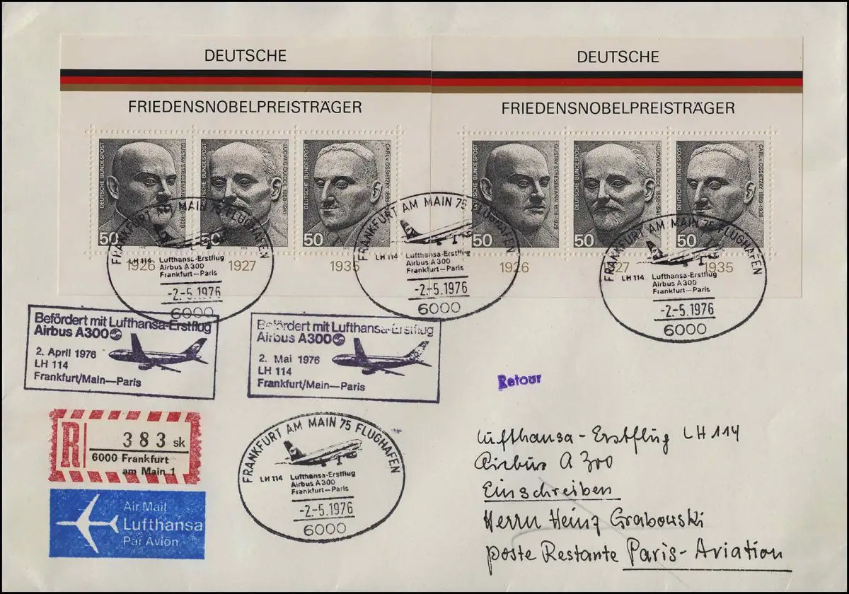 Premier vol Airbus A 300 Lufthansa LH 114 Frankfurt Main / Paris 2.5.1976 Lettre R
