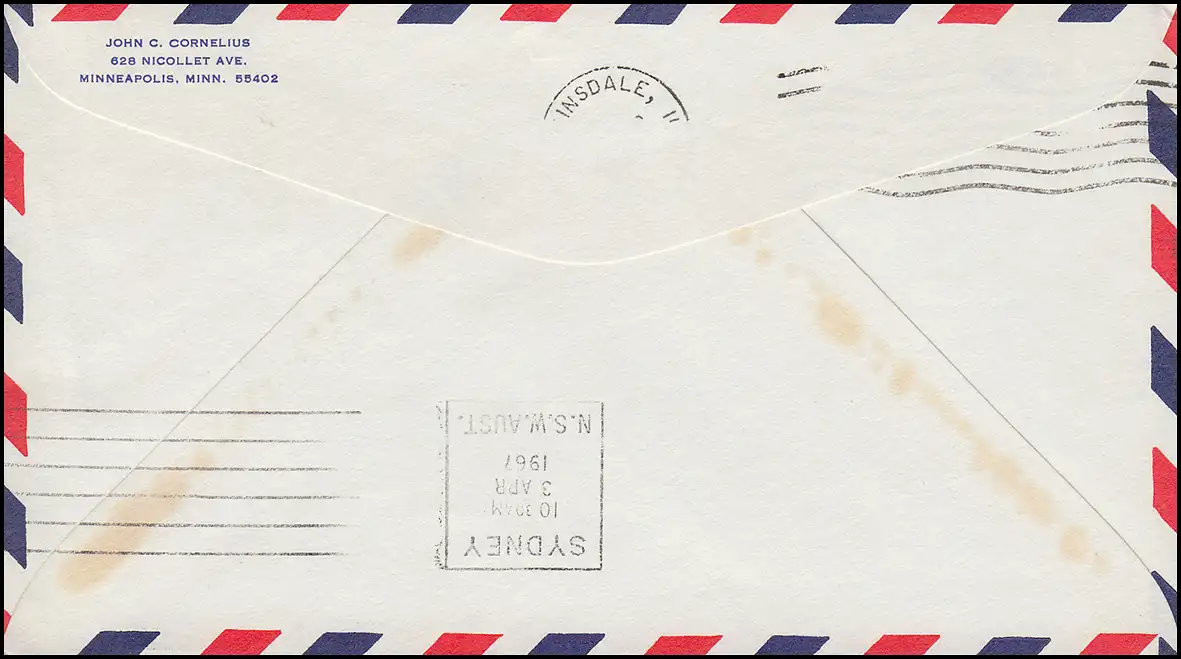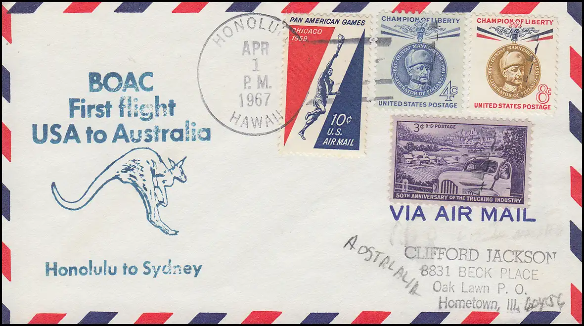 Premier vol BOAC First flight USA to Australia depuis HONOLULLU 1.4.67 vers SYDNEY 3.4.