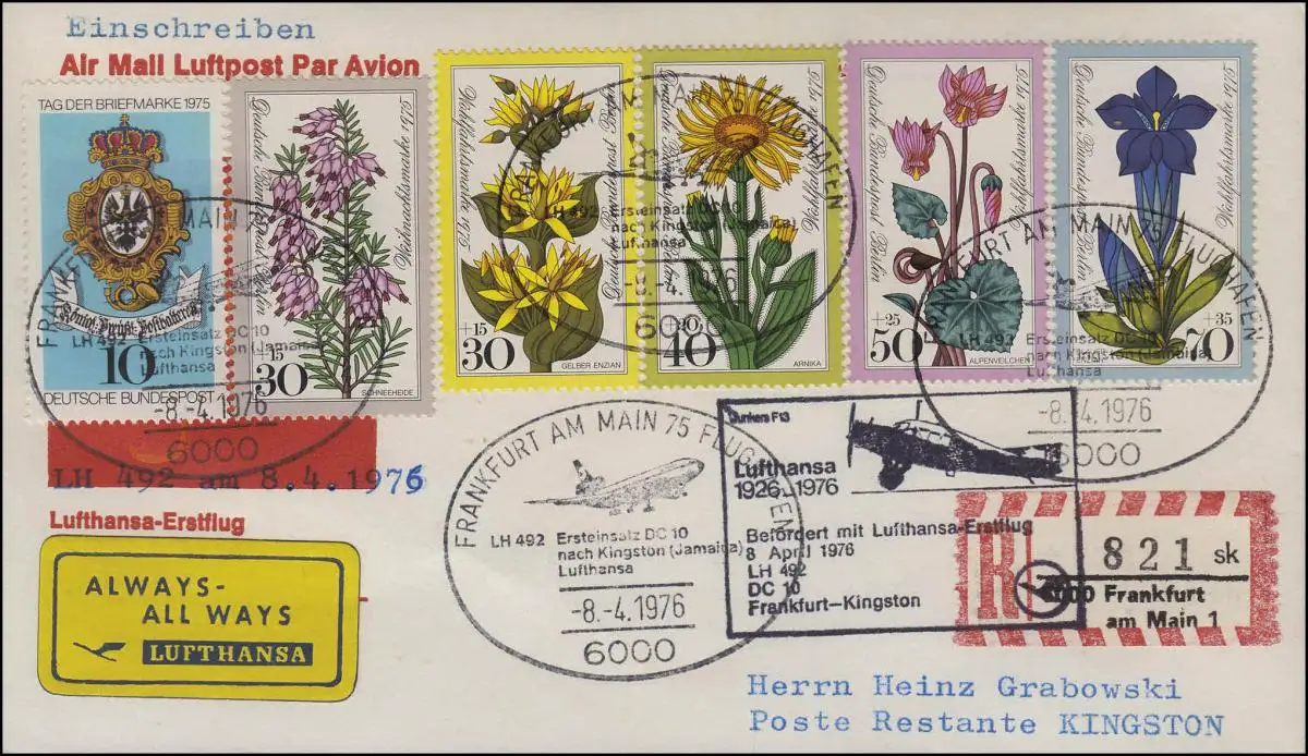 Premier vol DC10 LH 492 Lufthansa R-Lettre Francfort/Kingston 8.4./12/4.76