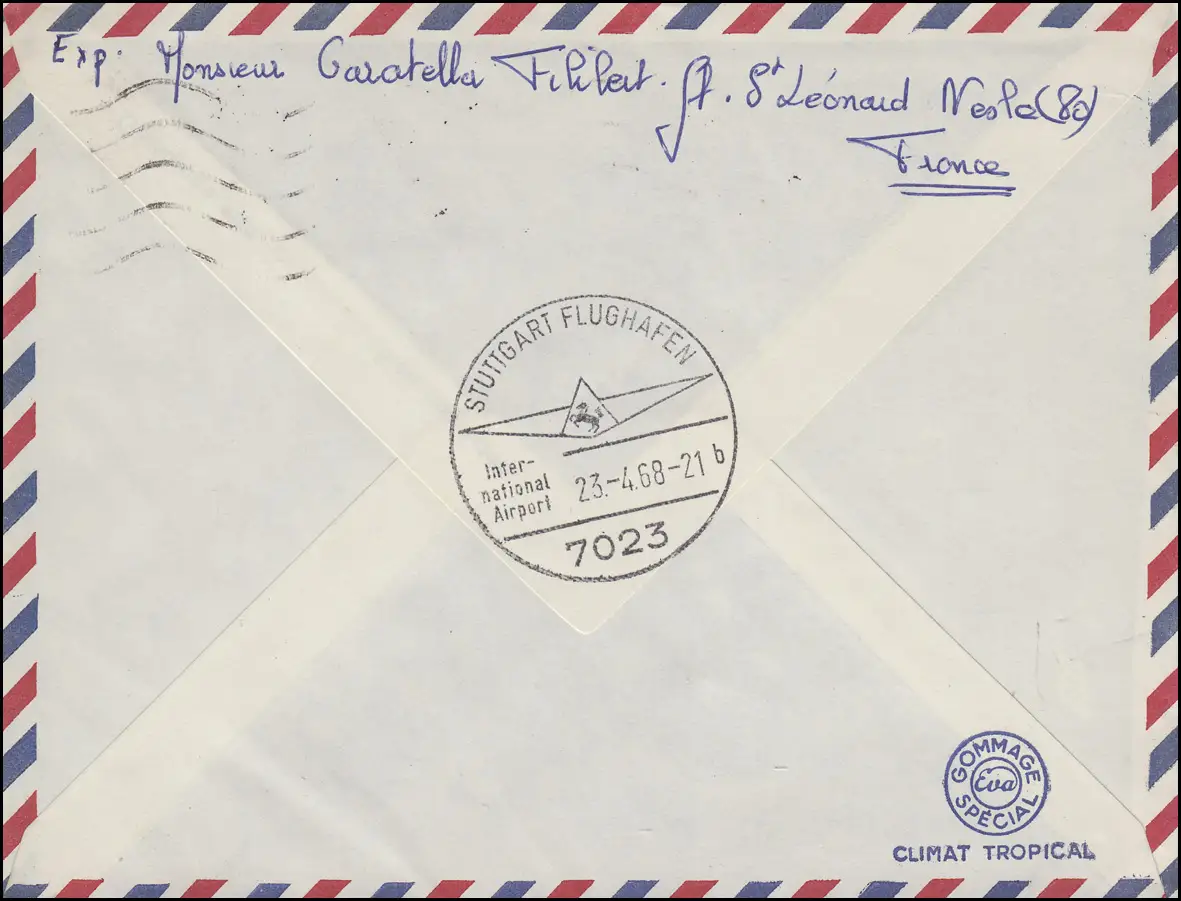 avec cachet d'arrivée / cachet spécial STUTTGART AÉROPORT International 23.4.1968 Vérification: original Numéro d ' article: 00000000020714