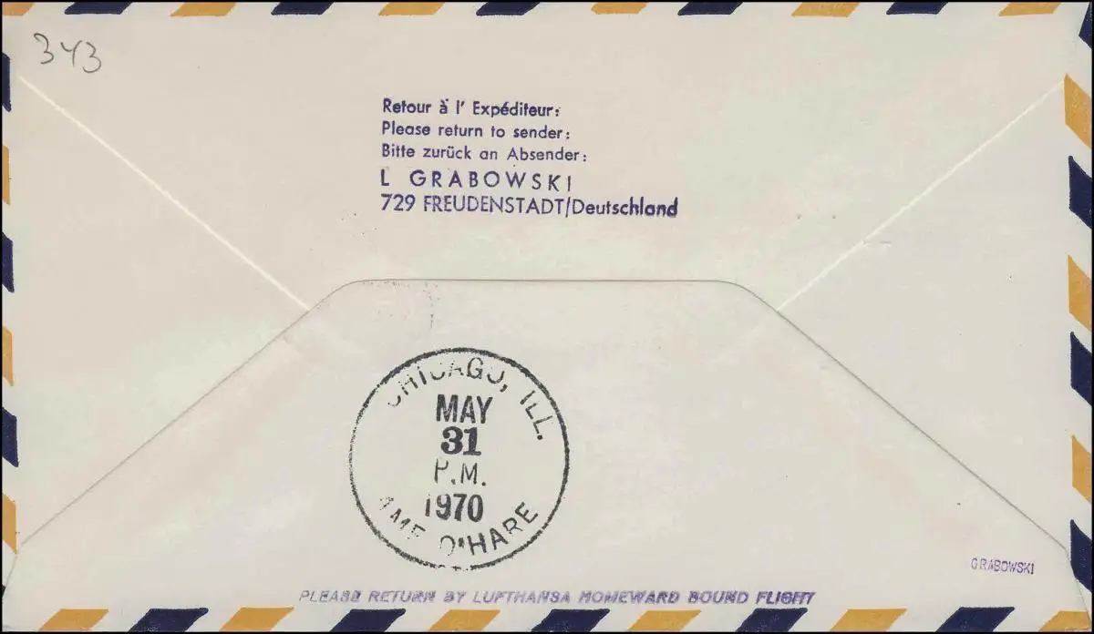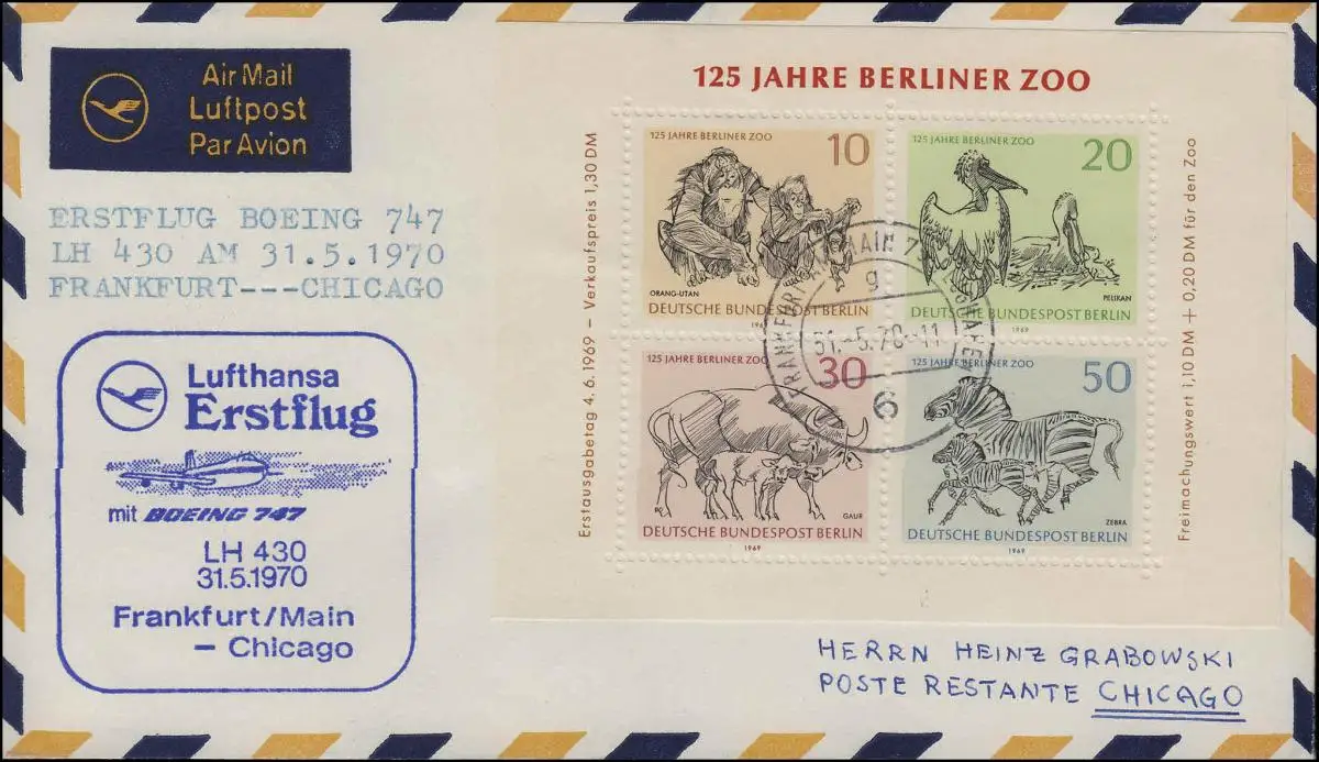 Premier vol Lufthansa LH 430 Boeing 747 Airmail Francfort/ Main - Chicago 31.5.1970