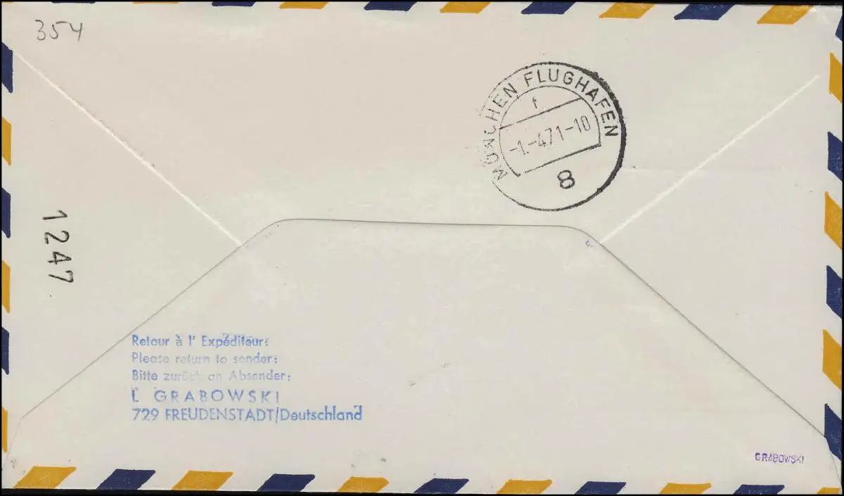 Premier vol Poste aérienne Lufthansa Numéro de vol modifié LH 975 Brême/München 1.4.1971