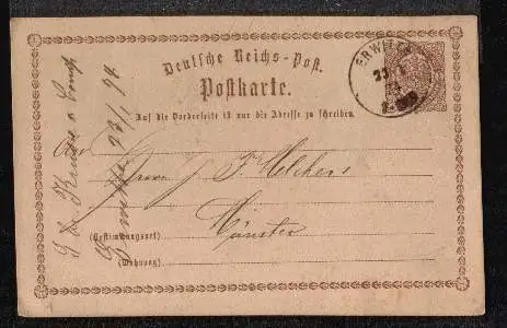 Erwitte. Stempel Keine Ansichtkarte - Gelaufen 1874. (NPLZ 59597)