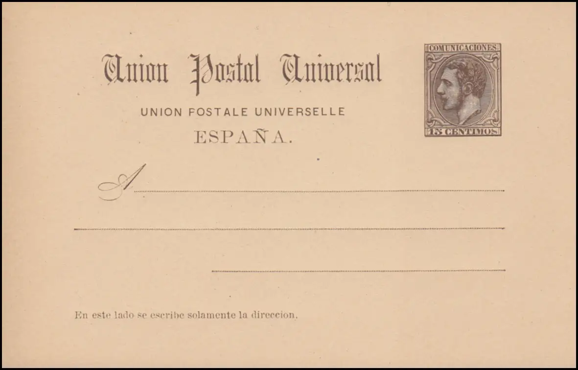 Espagne Carte postale P 11 Roi Alfons XII. 15 Centimos, non utilisé