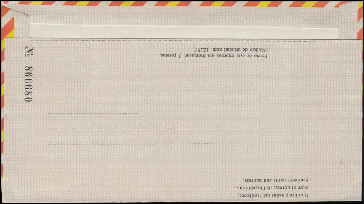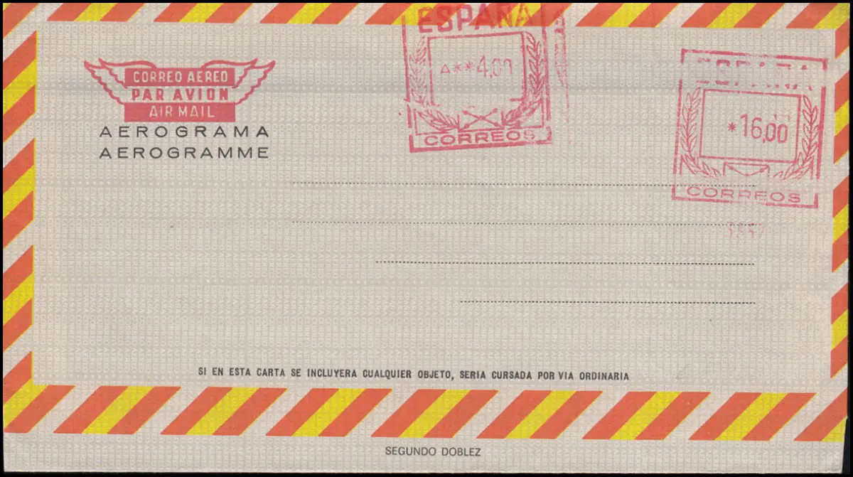 Espagne Lettre postale par avion LF 124 cachet gratuit 4+16,00 Ptas. non utilisé, plié