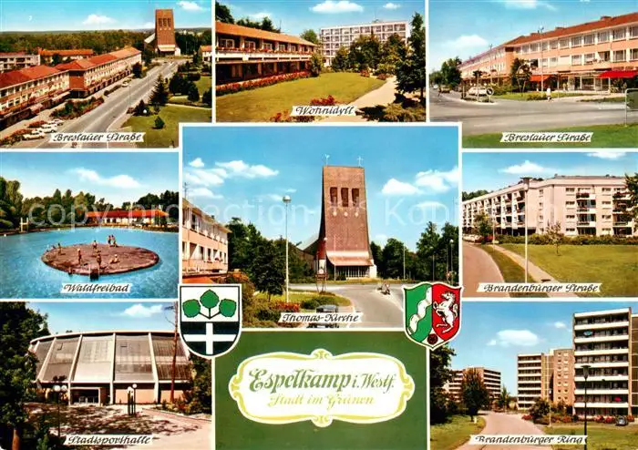 Espelkamp Strassenpartien Wohnidyll Freibad Kirche Sporthalle Wohnsiedlung Hochhaeuser Espelkamp