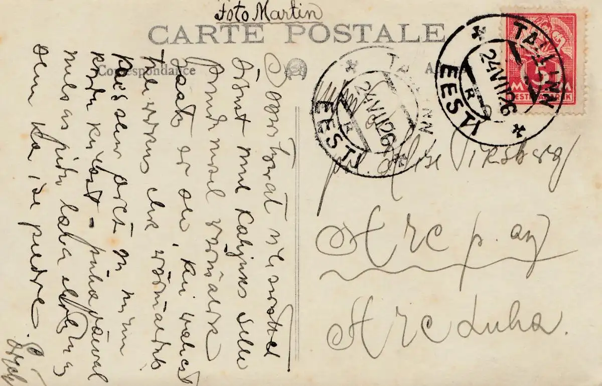 Estonie: 1926: carte de visite Tallinn