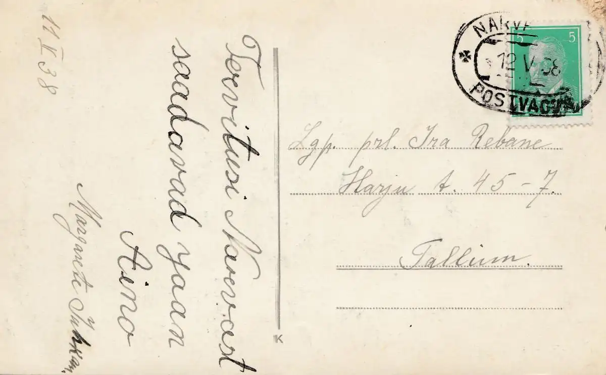 Estonie: 1938: Carte de la famille