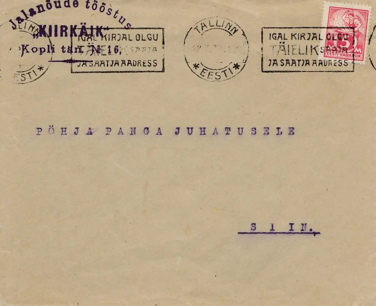 Estonie: Lettre de Kiirkäik à Siin, Country letter, Nordbank