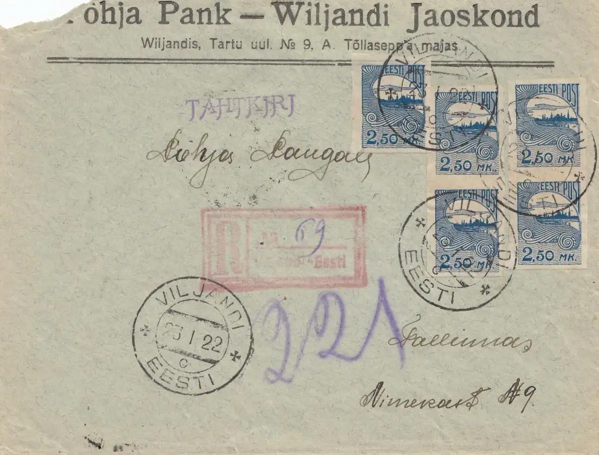 Estonie: 1922: lettre recommandée par Viljandis Tartu