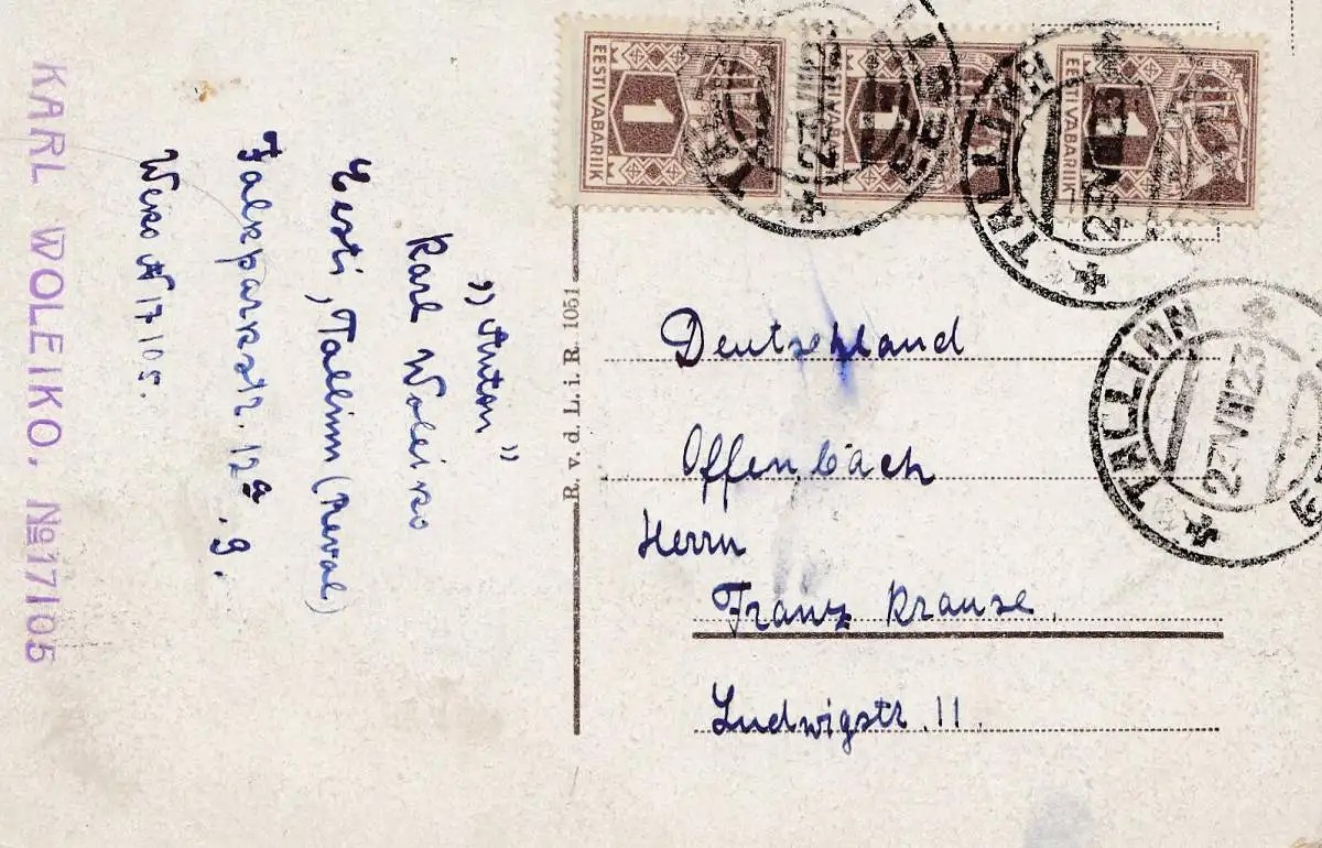 Estonie: carte de vision Tallinn en Allemagne en 1923