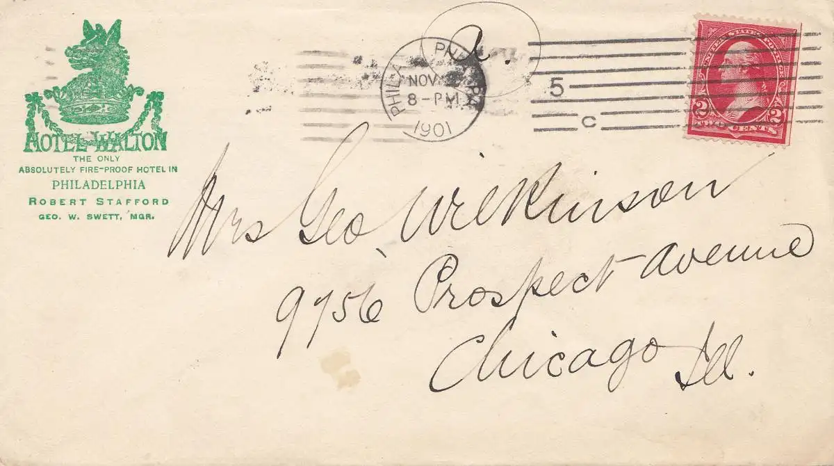États-Unis 1901: Philadelphie Hotel Walton to Chicago