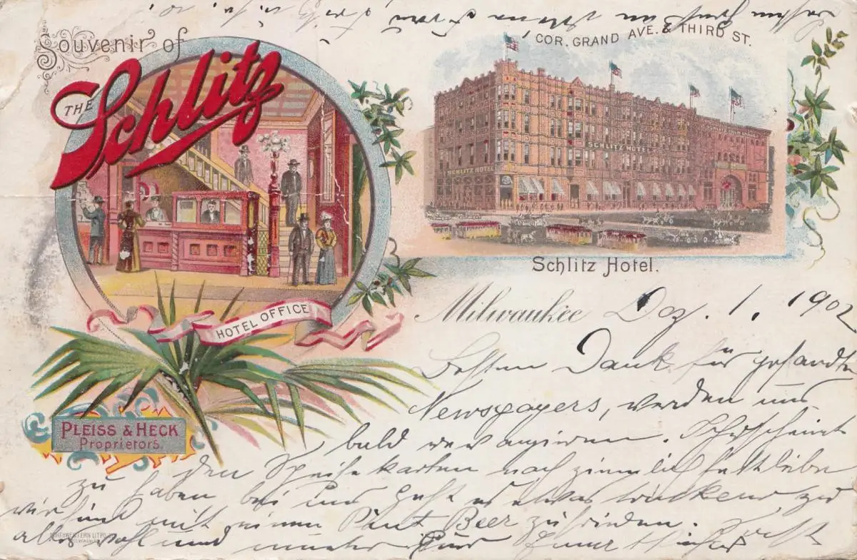 États-Unis: 1902: post card Schlitz, HNotel, Milwaoukee