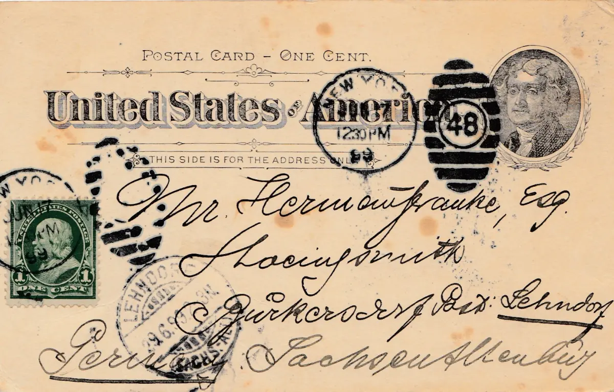 États-Unis: Fire Island: Postal card 1899 au Pérou