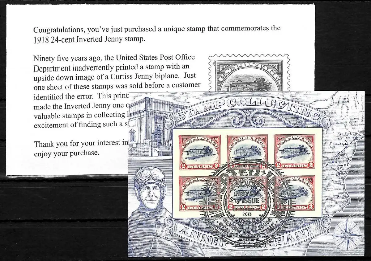 États-Unis: Inverted Jenny, bloc of stamps, 2013