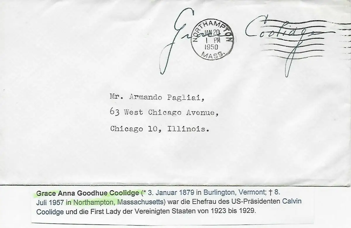 Grace Anna Goodhue Coolidge from Northampton Massachusetts, wife from US-President Calvin Coolidge of 1923 to 1929 Pour plus d'informations voir Scan Bild / Carte est entièrement reçu, San a coupé 1-2mm chacun. Référence produit: 7051019 Examen: original Référence d 'article: 00000007051019