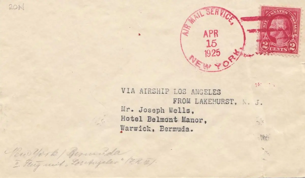 États-Unis d'Amérique 1925: air mail service New York to Warwick, Hamilton Bermudes