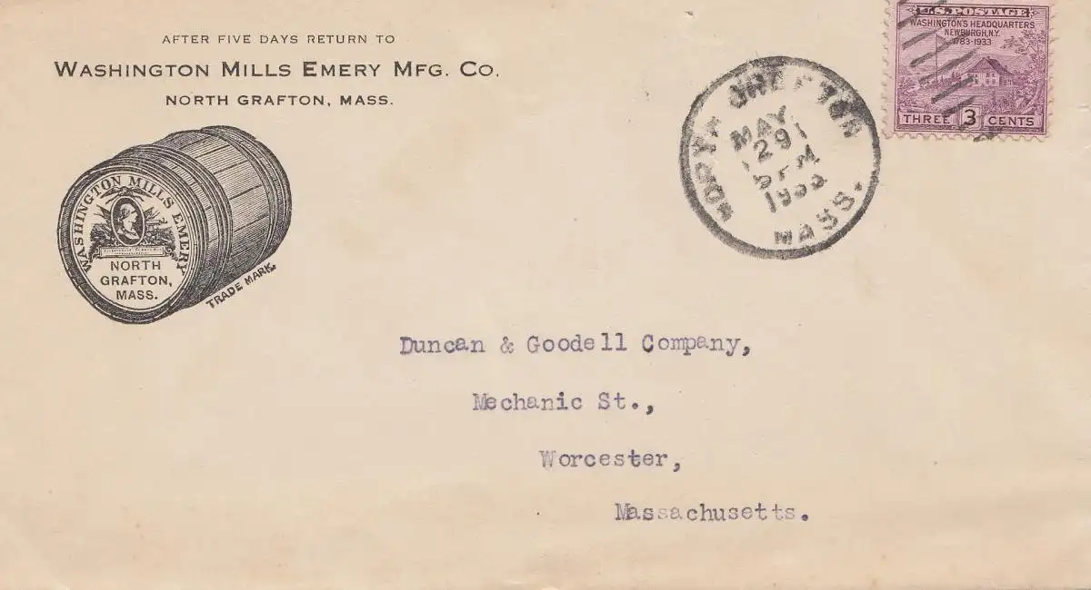 États-Unis d'Amérique 1933: North Grafton, Mass to Worcester, Mills