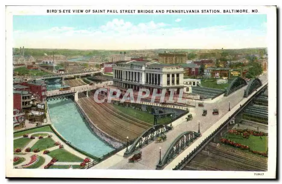 Etats unis Cartes postales Bird's eye of Saint Paul Street bridge and Pennsylvania Station Baltimore MD