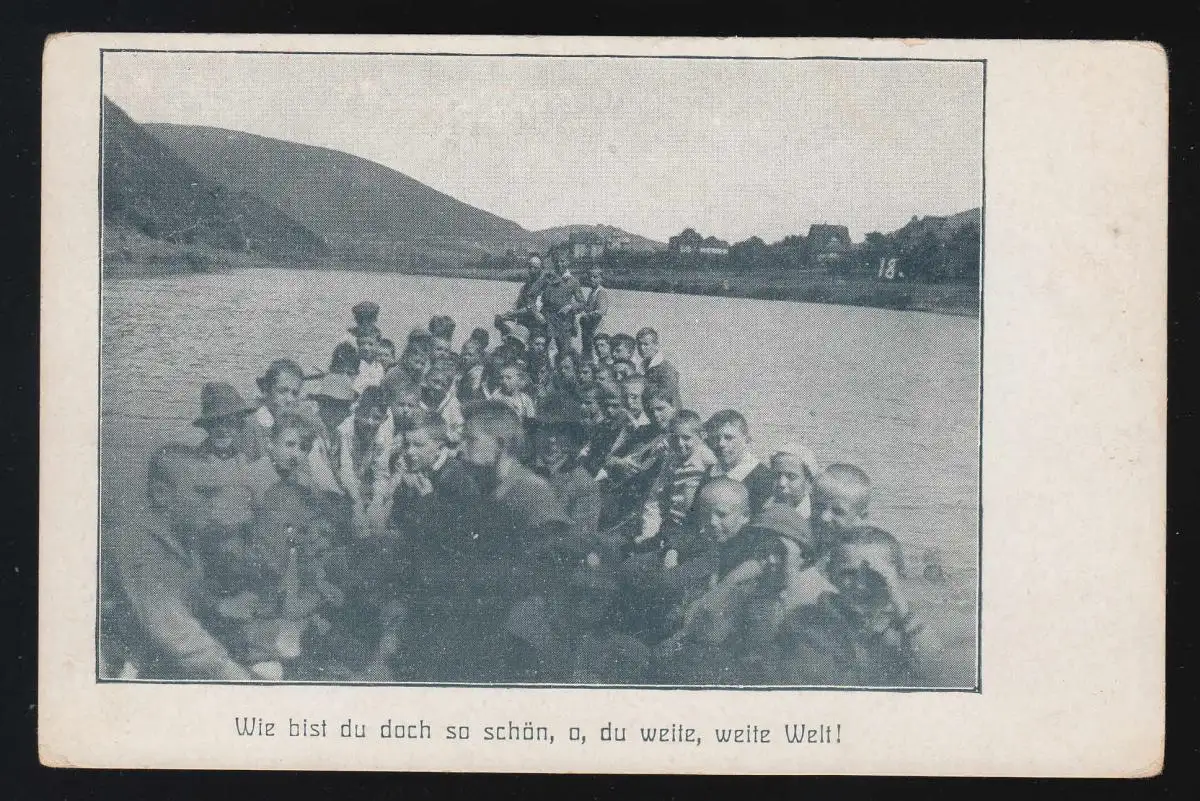 Photographie d'un groupe de jeunes, probablement enregistré sur le Rhin. B.K. Verlag (Emil Müller), Barmen. Examen: original Référence d 'article: 00000000046470