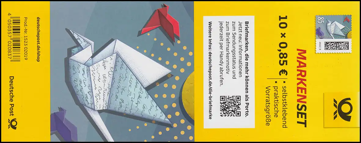 FB 114a Monde des lettres: Pigeon-lettre 85 cent, feuille 10x3652, 152302019 **