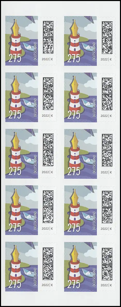 FB 117 Monde des lettres: stylo à ressort lumineux 275 centimes, feuille 10x3668, **
