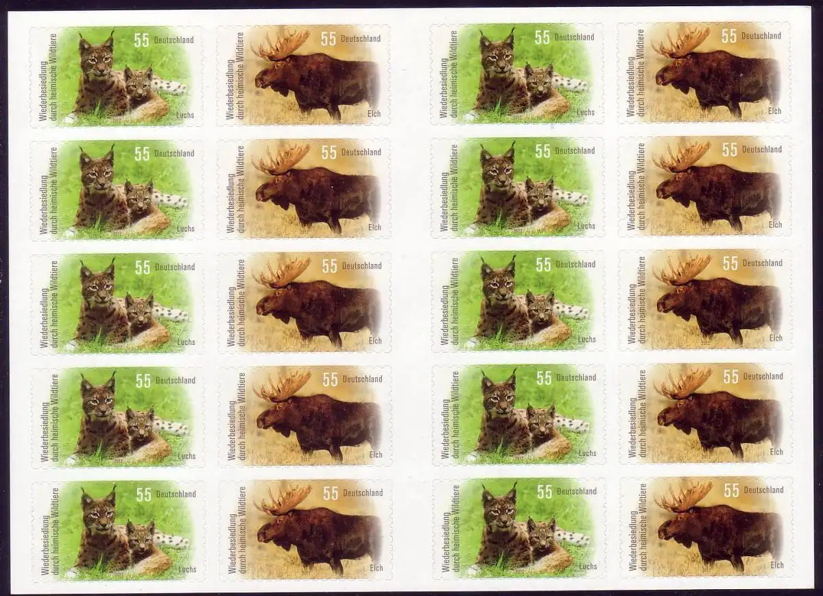 FB 21 Lynx et élan sauvage, feuille 5 fois 2921-2922, **