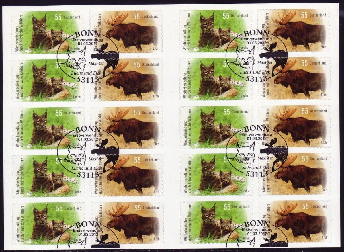 FB 21 Lynx et élan sauvage, feuille 5x2921-2922, EV-O Bonn 1.3.2012