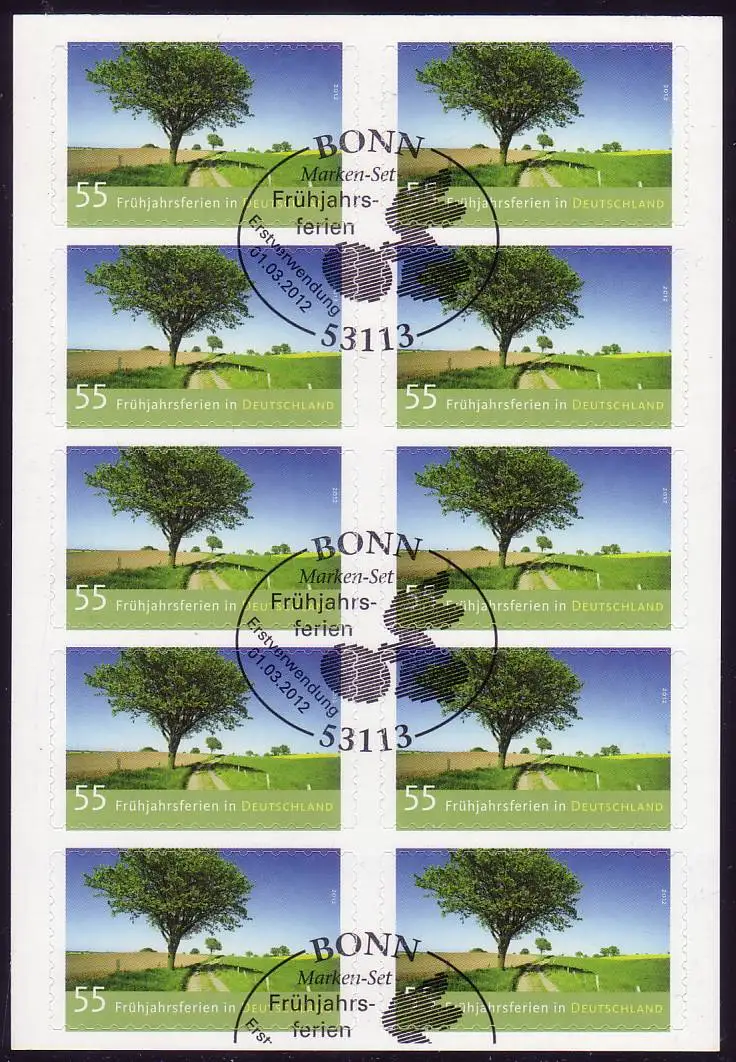 FB 22 vacances de printemps, feuille 10x2923, première utilisation, Bonn 1.3.2001