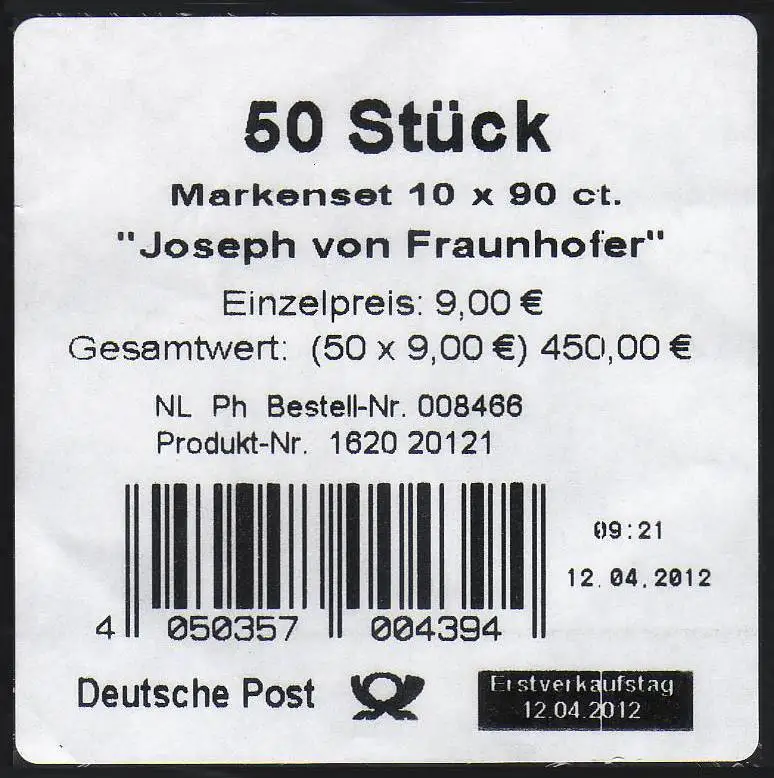 FB 23 Fraunhofer, feuille feuille Banderole pour 50 sets de marque