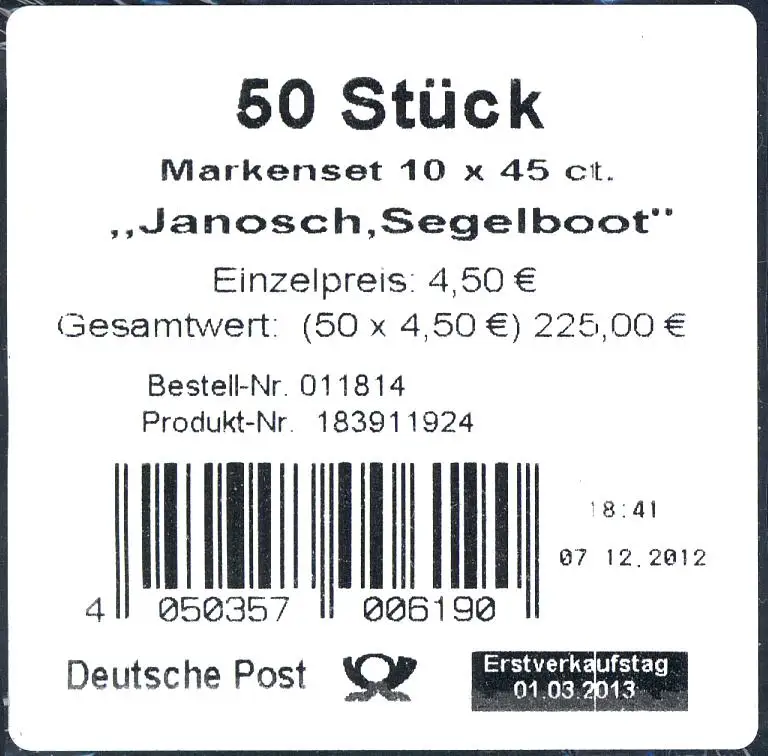 FB 27 Janosch: voilier, feuille feuille - Banderole pour 50 sets de marque