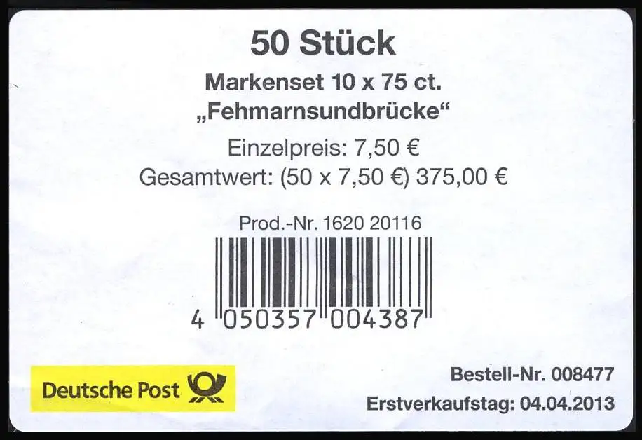 FB 29 Pont Fehmarnsund, feuille feuille - Banderole sans code DHL