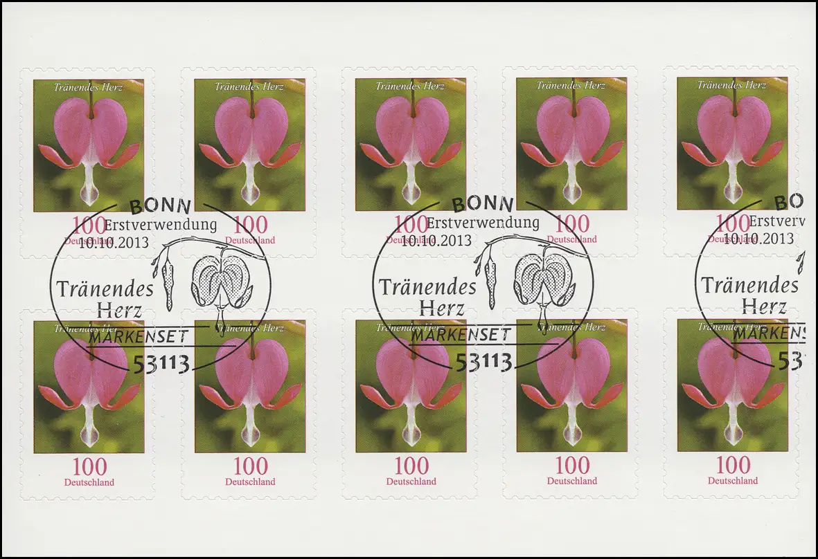 FB 33 Fleur Coeur larmes 100 cents, feuille de 10 x 3034, EV-O Bonn