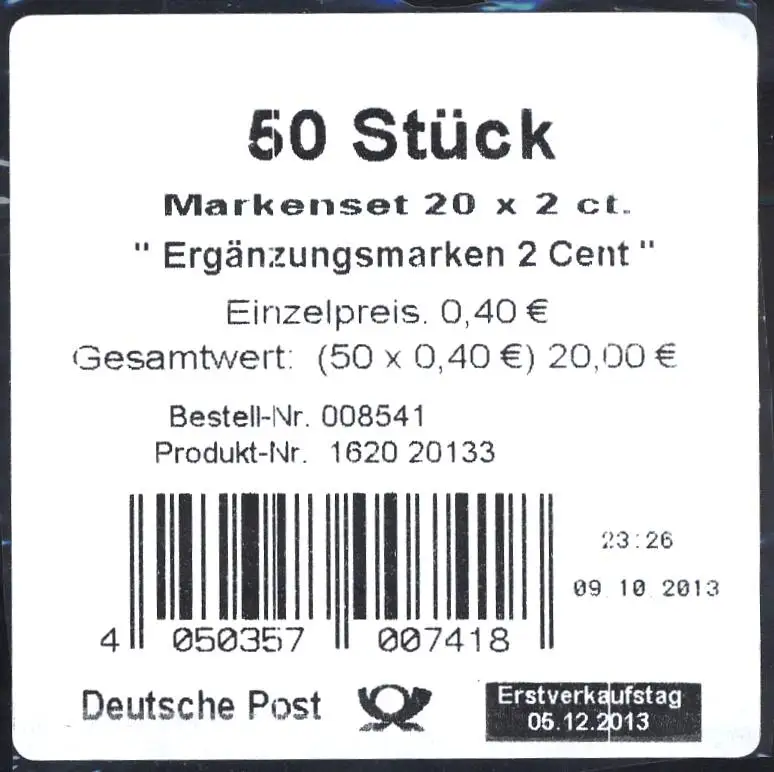 FB 34 Marque supplémentaire 2 C. avec SAD 2013, BANDEROLE 50 feuille pour sets