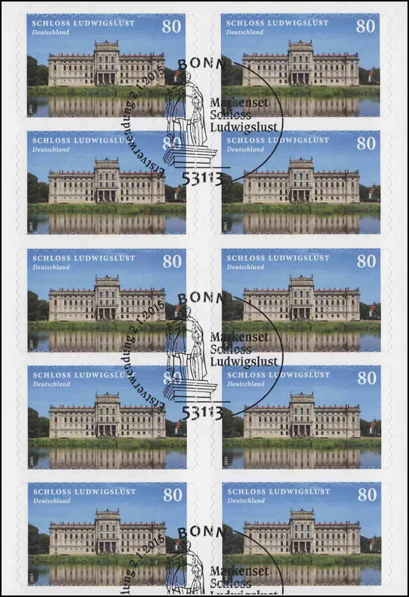 FB 43 Château Ludwigslust, feuille de 10x 3128, EV-O Bonn