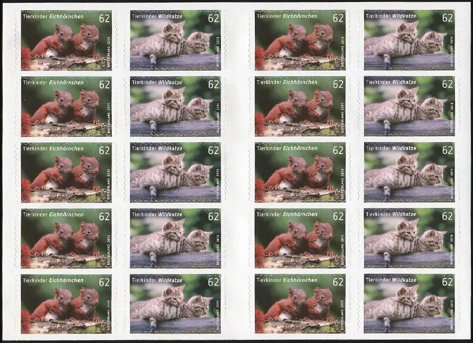 FB 44 Enfants d'animaux écureuils / chat sauvage, feuille de 10x 3129-3130, **
