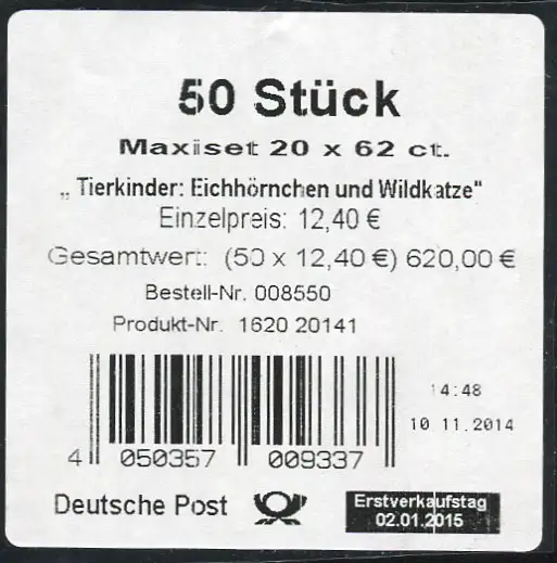 FB 44 Enfants d'animaux écureuils et chat sauvage, banderole pour 50 pièces