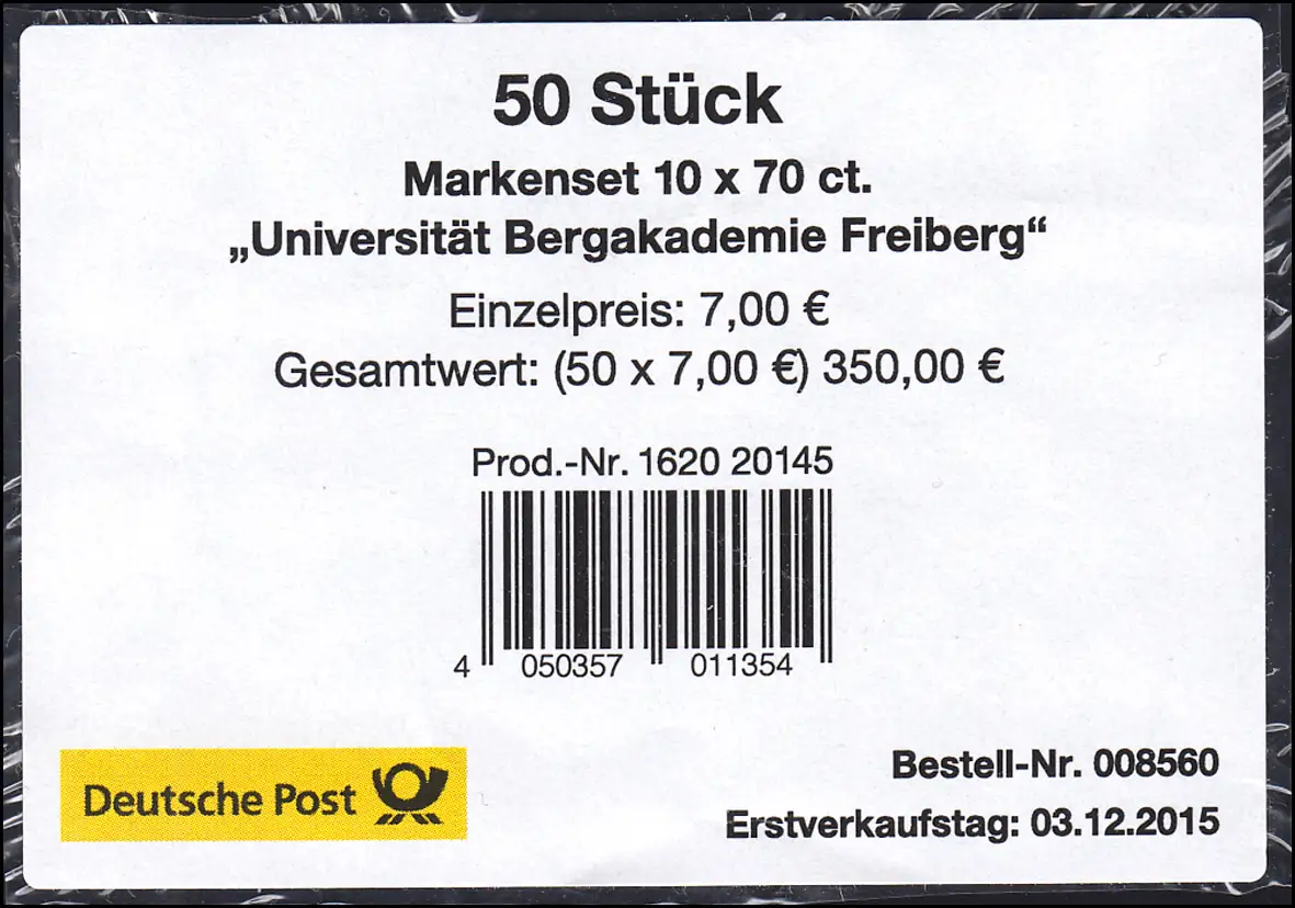 FB 52 Bergakademie Freiberg, BANDEROLE, format 75x52, petits chiffres