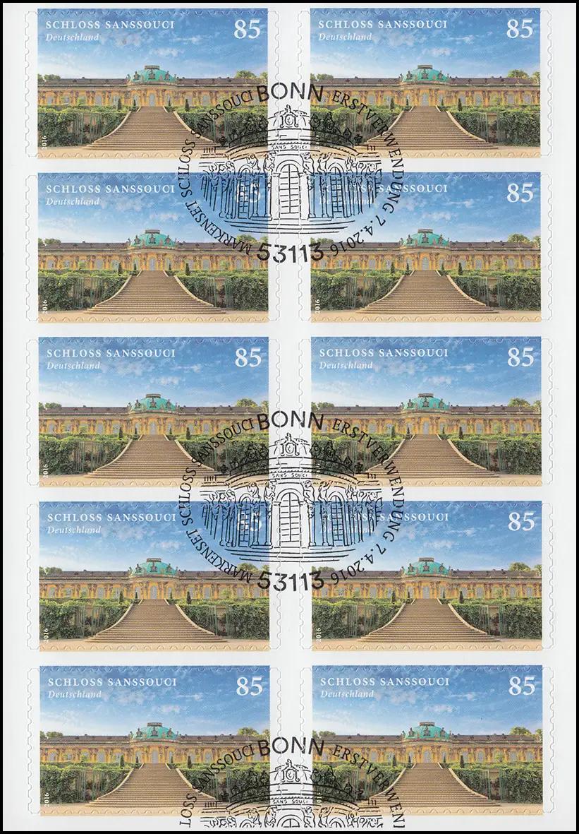 FB 56 Château Sanssouci, feuille de 10x3231, EV-O Bonn 7.4.2016