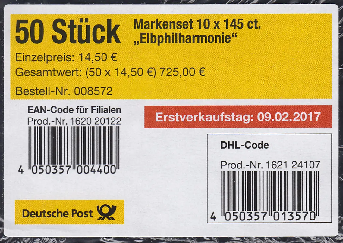 FB 63 Ouverture de l'harmonie elbphil, BANDEROLE feuille avec code DHL