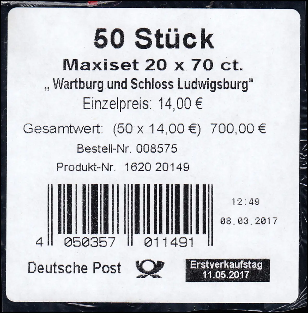 FB 67 Wartburg et Château de Ludwigsburg, BANDEROLE feuille non-code DHL