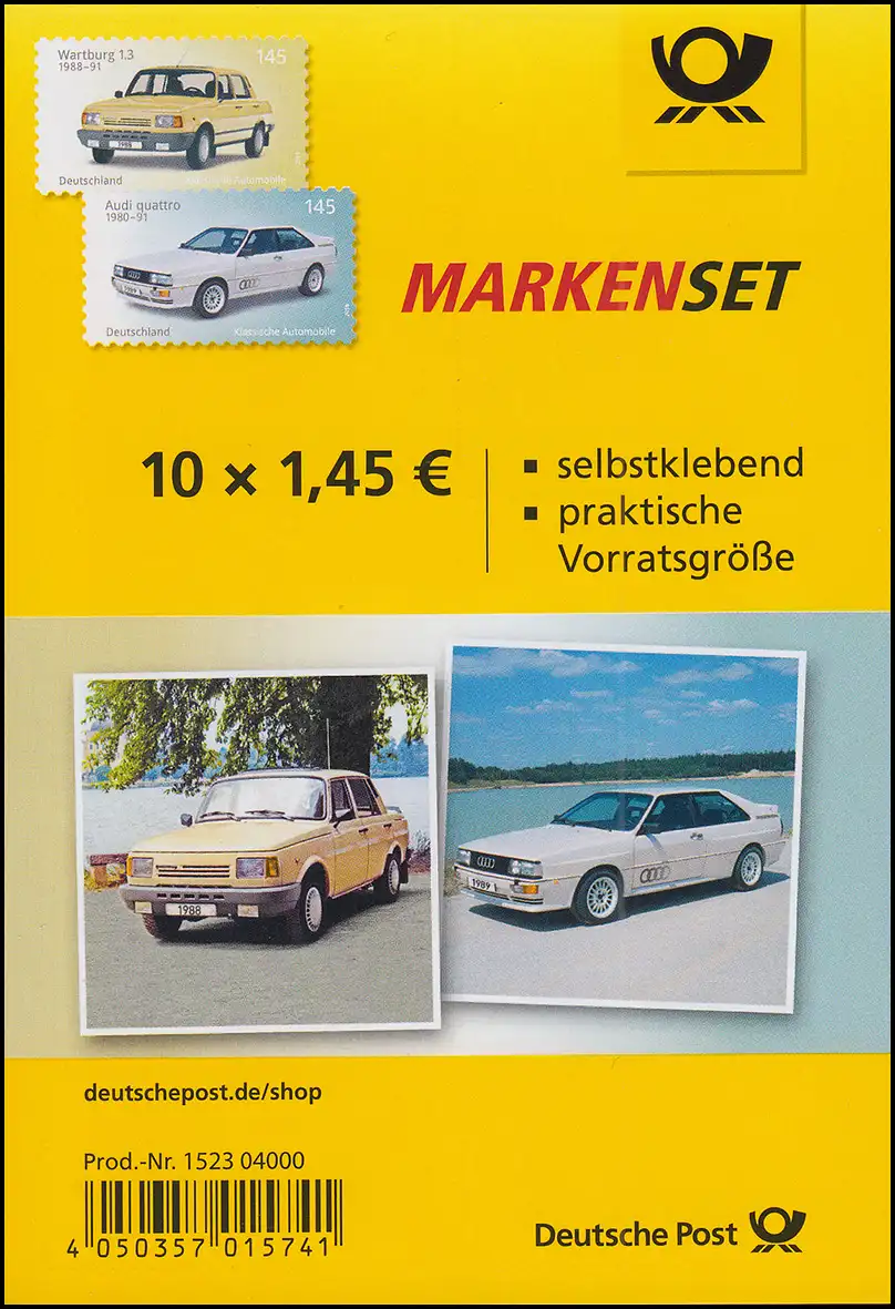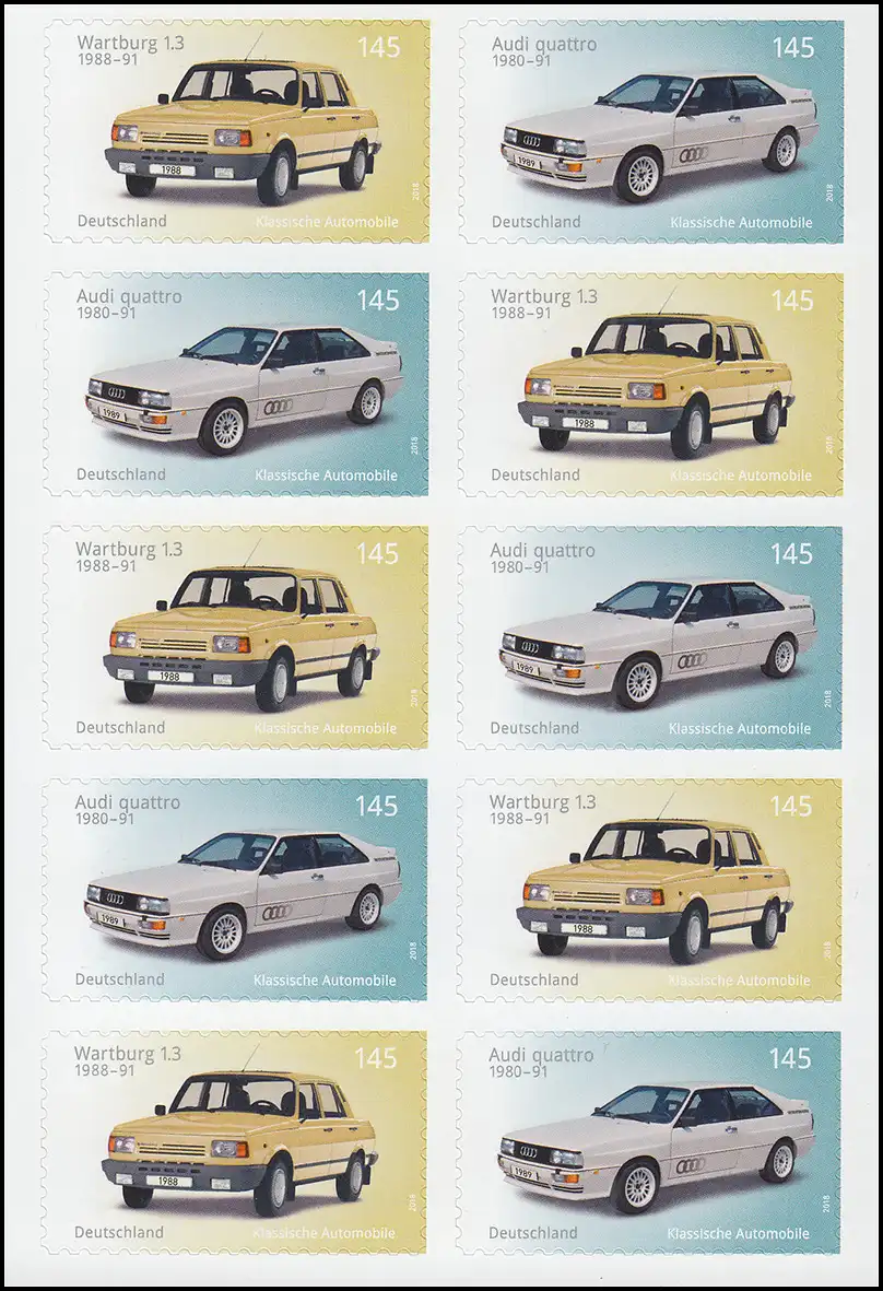 FB 76 Automobile Wartburg & Audi quattro, feuille de 5x3378-3379, **